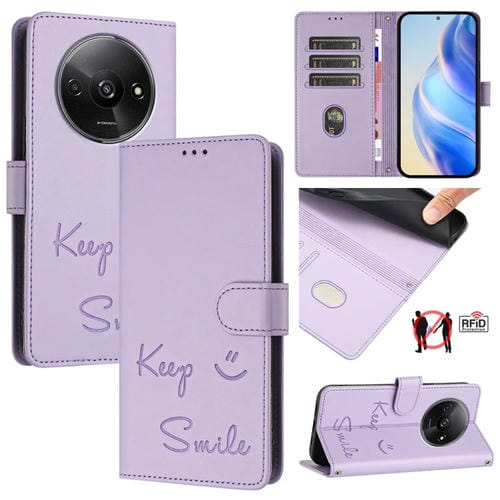 Funda de Cuero Rfid con Relieve de Sonrisa Global para Redmi A3 4G (Morado Claro)