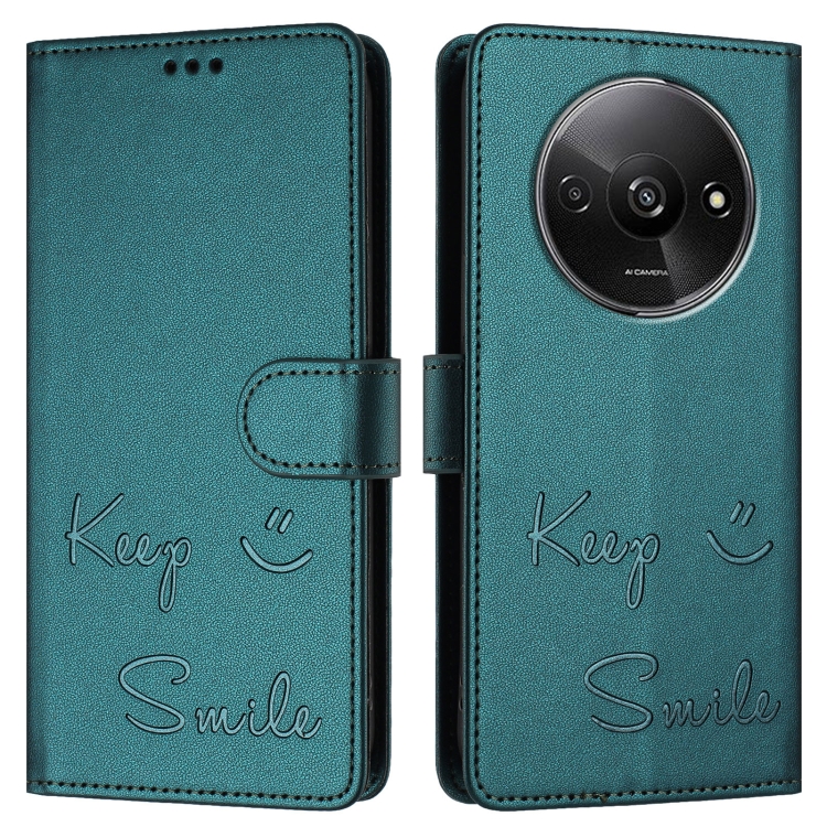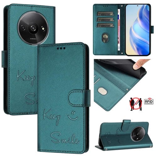 Funda de Cuero Rfid con Relieve de Sonrisa Global para Redmi A3 4G (Verde Pavo Real)