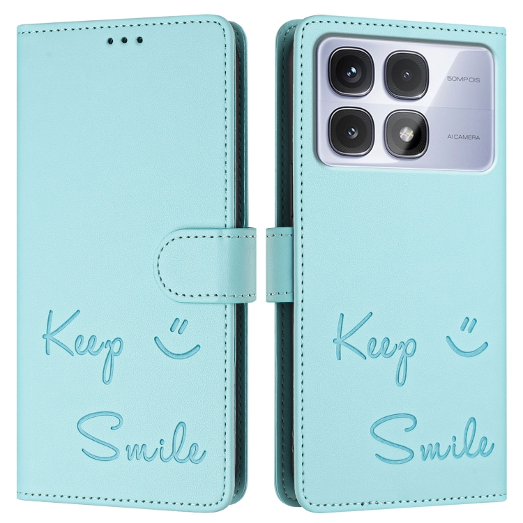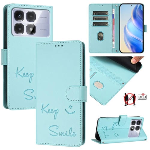 Funda de Cuero Rfid con Relieve de Sonrisa Global para Redmi K70 Ultra 5G (Verde Menta)