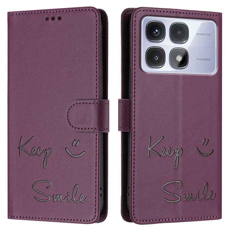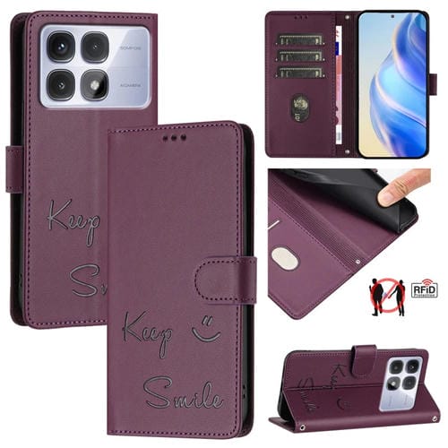 Funda de Cuero Rfid con Relieve de Sonrisa Global para Redmi K70 Ultra 5G (Violeta)