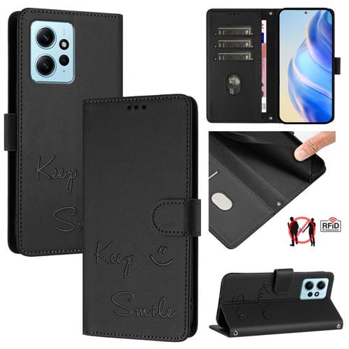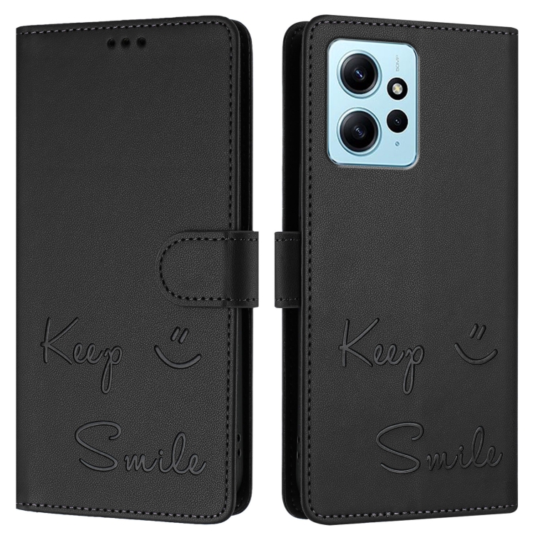 Funda de Cuero Rfid con Relieve de Sonrisa Global para Redmi Note 12 4G (Negra)