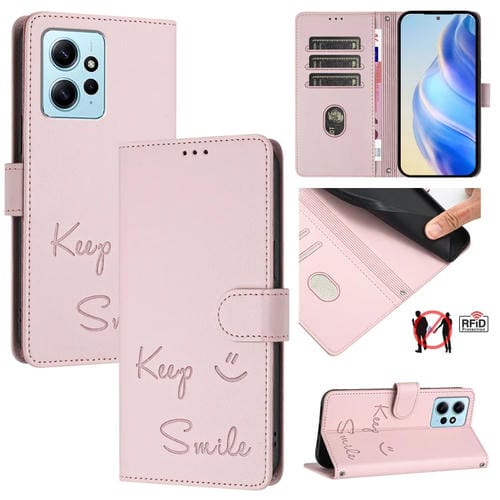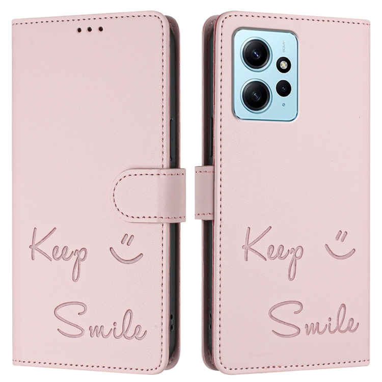 Funda de Cuero Rfid con Relieve de Sonrisa Global para Redmi Note 12 4G (Rosa)