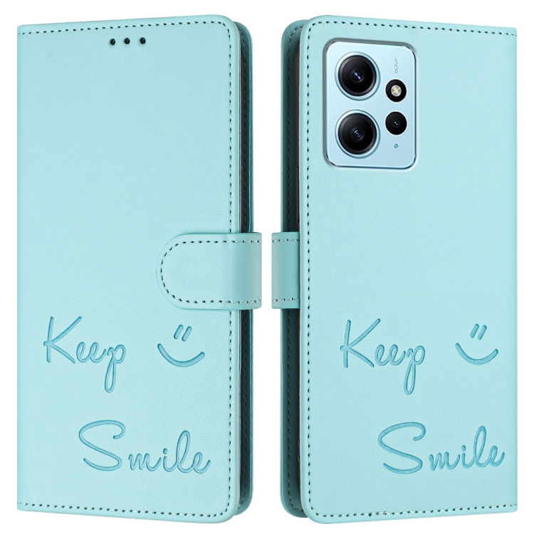 Funda de Cuero Rfid con Relieve de Sonrisa Global para Redmi Note 12 4G (Verde Menta)