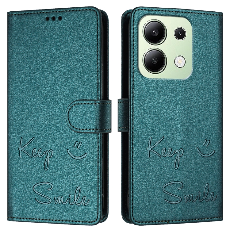 Funda de Cuero Rfid con Relieve de Sonrisa Global para Redmi Note 13 4G (Verde Pavo Real)