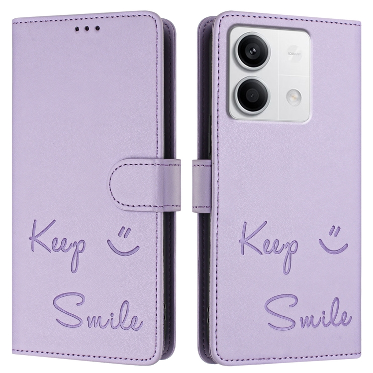 Funda de Cuero Rfid con Relieve de Sonrisa Global para Redmi Note 13 5G (Morado Claro)