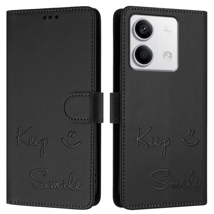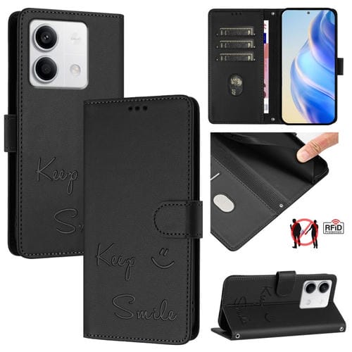 Funda de Cuero Rfid con Relieve de Sonrisa Global para Redmi Note 13 5G (Negra)