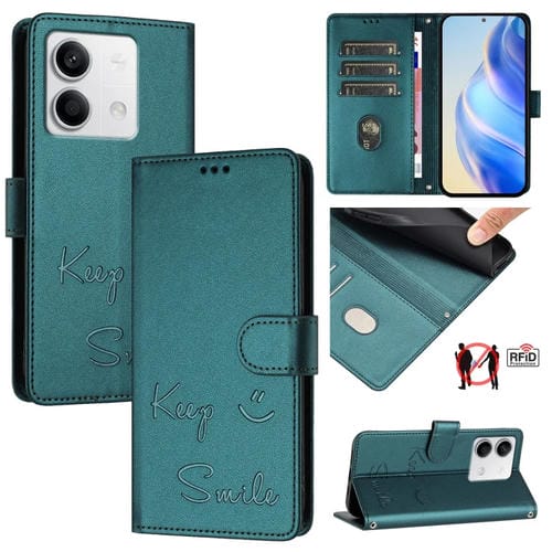 Funda de Cuero Rfid con Relieve de Sonrisa Global para Redmi Note 13 5G (Verde Pavo Real)