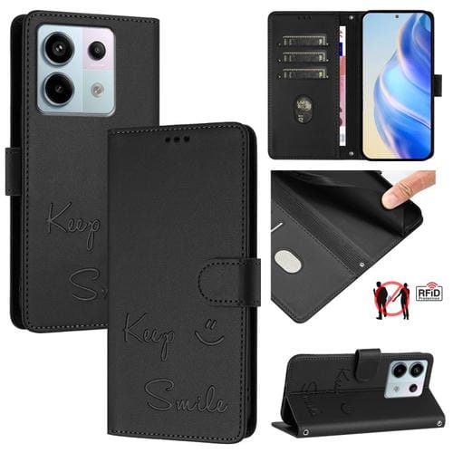 Funda de Cuero Rfid con Relieve de Sonrisa Global para Redmi Note 13 Pro 5G (Negra)