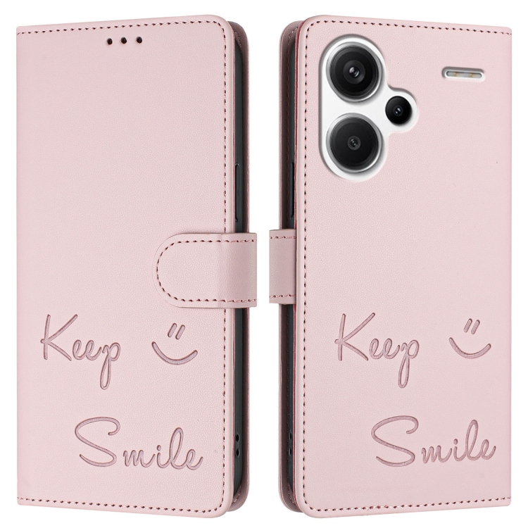 Funda de Cuero Rfid con Relieve de Sonrisa Global para Redmi Note 13 Pro+ (Rosa)