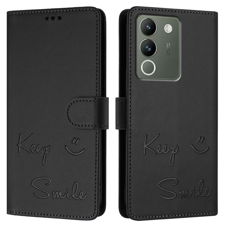 Funda de Cuero Rfid con Relieve de Sonrisa Global para Vivo V29E 5G (Negra)