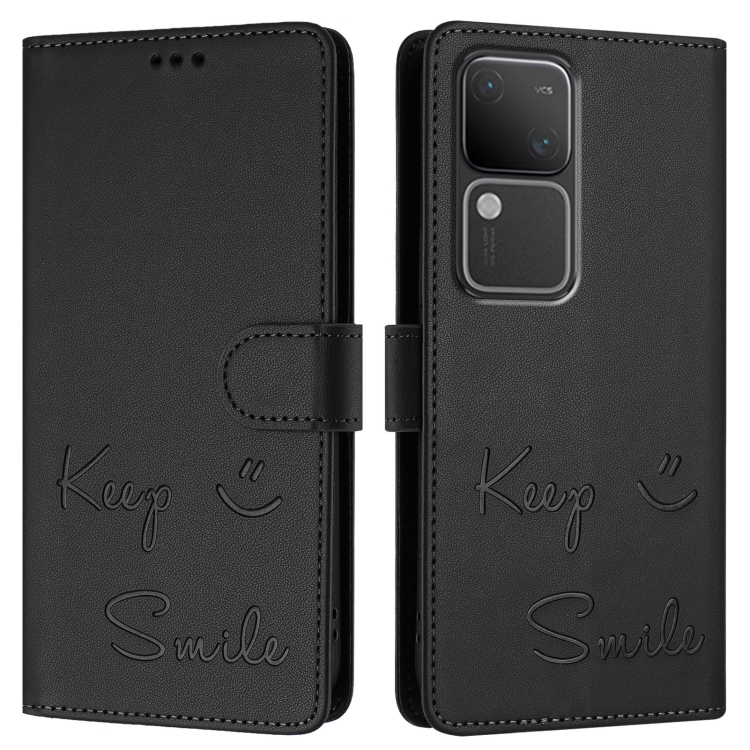 Funda de Cuero Rfid con Relieve de Sonrisa Global para Vivo V30 5G (Negra)