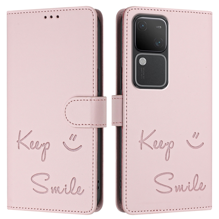 Funda de Cuero Rfid con Relieve de Sonrisa Global para Vivo V30 Pro 5G (Rosa)