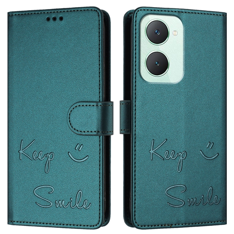 Funda de Cuero Rfid con Relieve de Sonrisa Global para Vivo Y03 4G (Verde Pavo Real)
