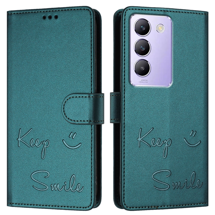 Funda de Cuero Rfid con Relieve de Sonrisa Global para Vivo Y200E 5G (Verde Pavo Real)