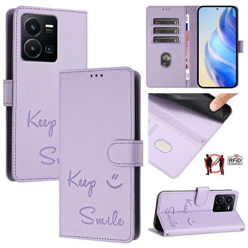 Funda de Cuero Rfid con Relieve de Sonrisa Global para Vivo Y22S 4G (Morado Claro)