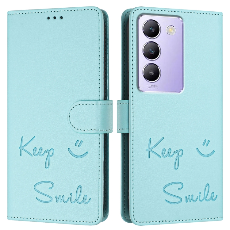 Funda de Cuero Rfid con Relieve de Sonrisa Idn para Vivo Y100 5G (Verde Menta)