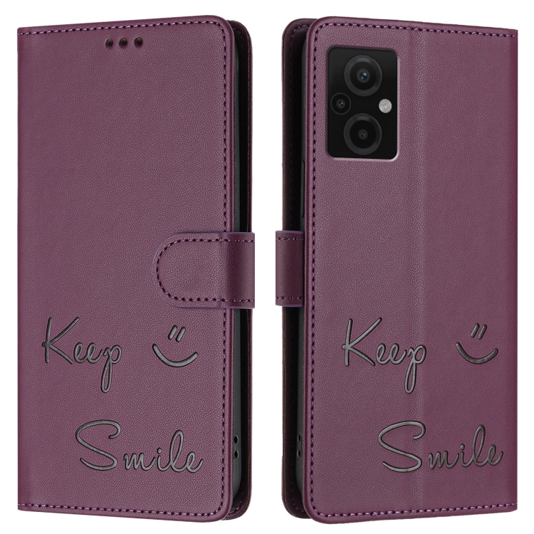Funda de Cuero Rfid con Relieve de Sonrisa India para Redmi 10 Prime+ 5G (Violeta)