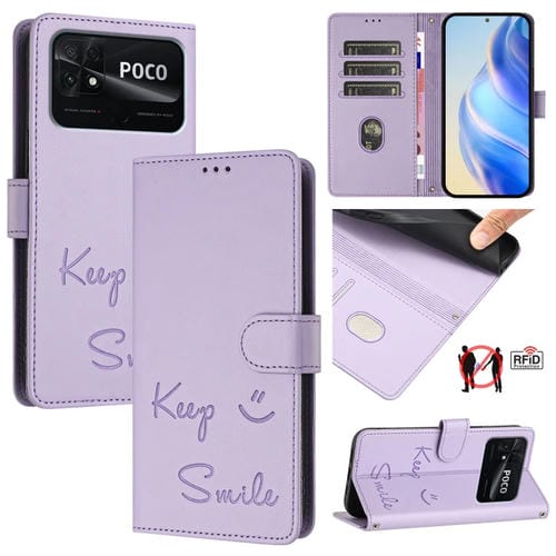 Funda de Cuero Rfid con Relieve de Sonrisa India para Redmi 10C/Redmi 10 2022 (Morado Claro)