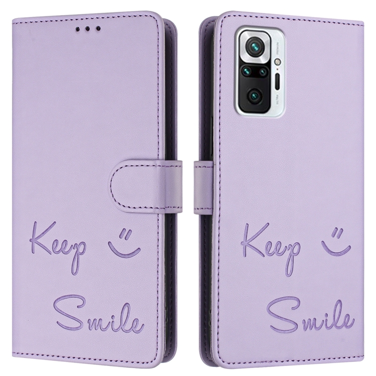 Funda de Cuero Rfid con Relieve de Sonrisa India para Redmi Note 10 Pro (Morado Claro)