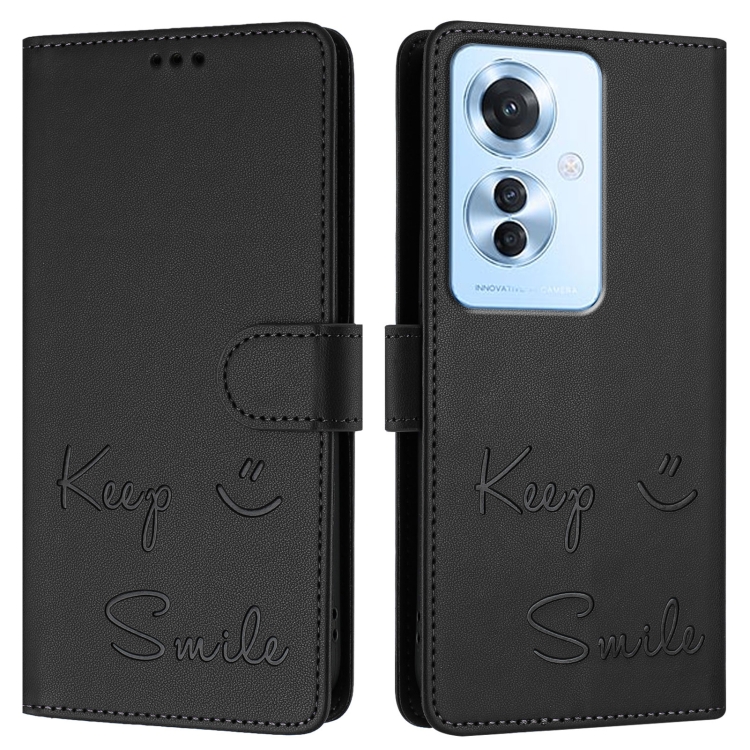 Funda de Cuero Rfid con Relieve de Sonrisa para Oppo F25 Pro 5G (Negra)