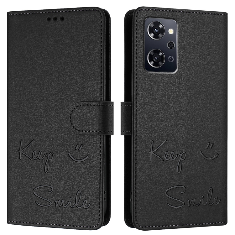 Funda de Cuero Rfid con Relieve de Sonrisa para Oppo Reno9 (Negra)