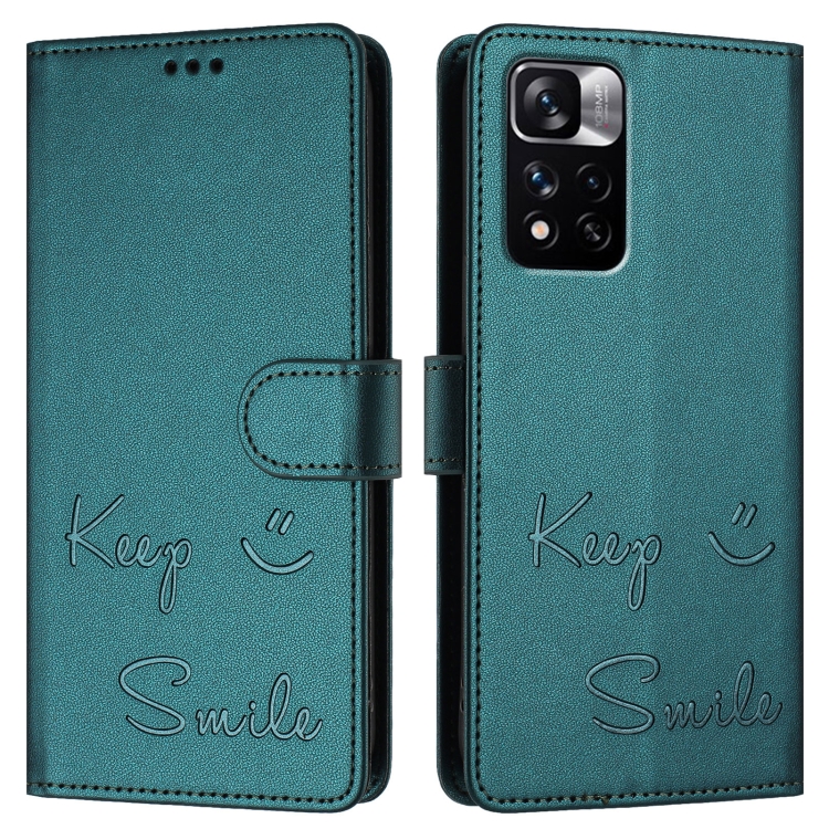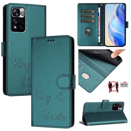 Funda de Cuero Rfid con Relieve de Sonrisa para Redmi Note 11 Pro+ 5G Eu (Verde Pavo Real)