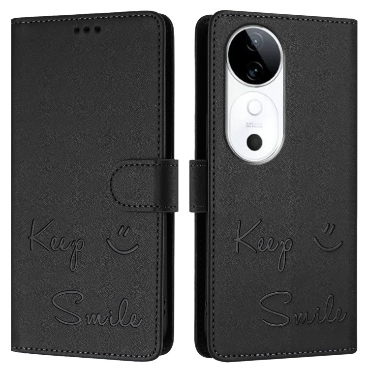 Funda de Cuero Rfid con Relieve de Sonrisa para Teléfono Vivo S19 (Negra)