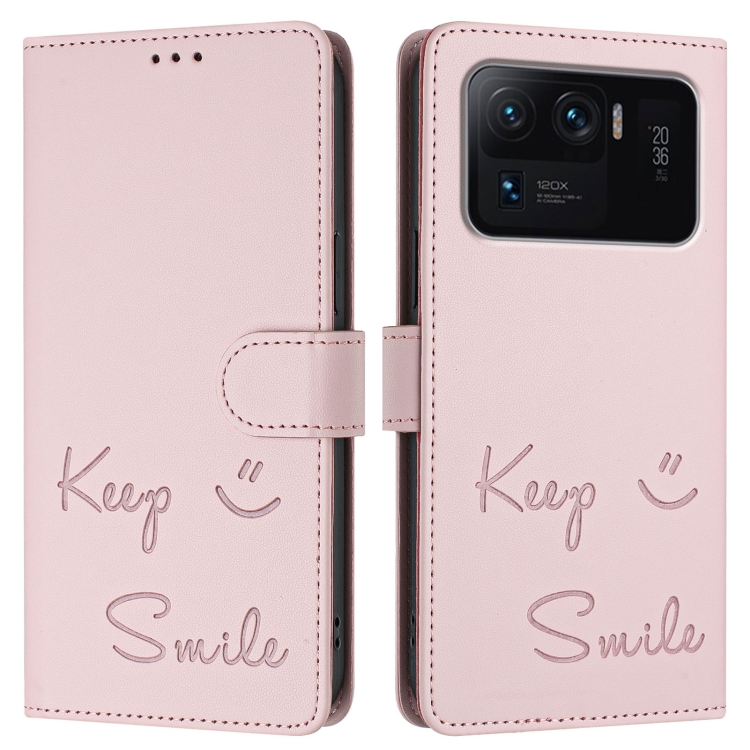 Funda de Cuero Rfid con Relieve de Sonrisa para Xiaomi Mi 11 Ultra (Rosa)