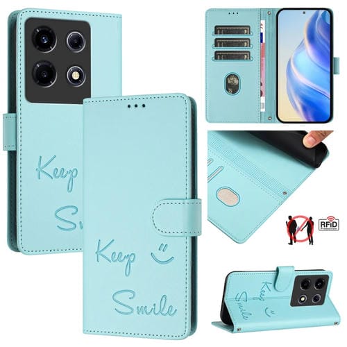 Funda de Cuero Rfid con Relieve de Sonrisa Vip para Infinix Note 30 (Verde Menta)