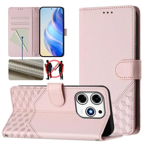 Funda de Cuero Rfid con Relieve Panal de Abeja para Tecno Spark 10 Pro (Magenta)