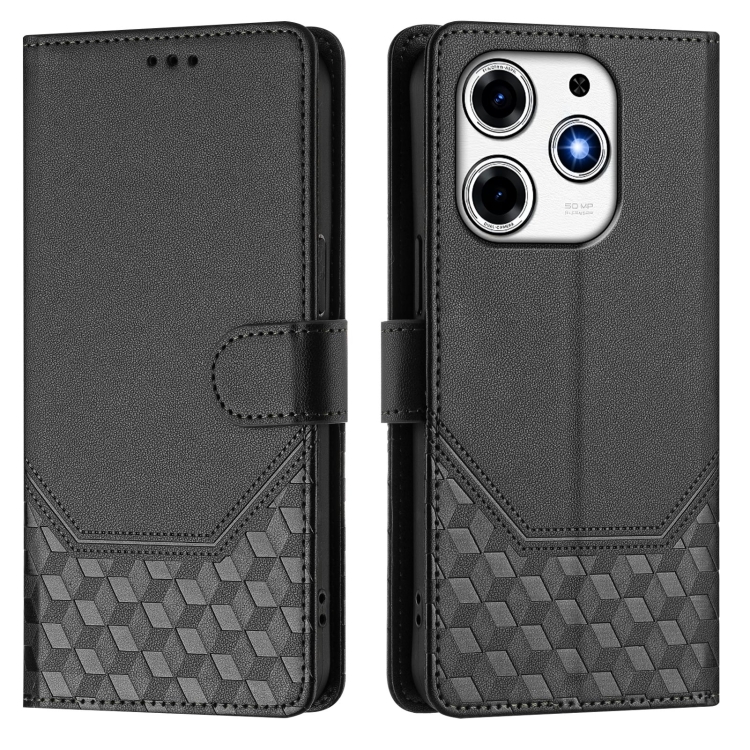 Funda de Cuero Rfid con Relieve Panal de Abeja para Tecno Spark 10 Pro (Negro)