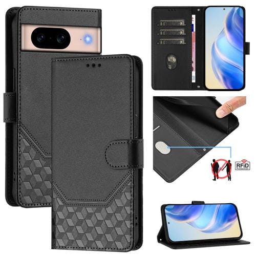 Funda de Cuero Rfid con Relieve en Panal para Google Pixel 8A (Negra)