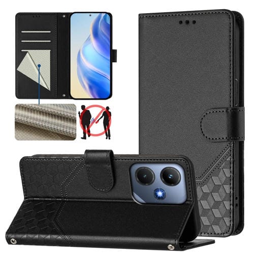 Funda de Cuero Rfid con Relieve en Panal para Infinix Hot 30I (Negra)
