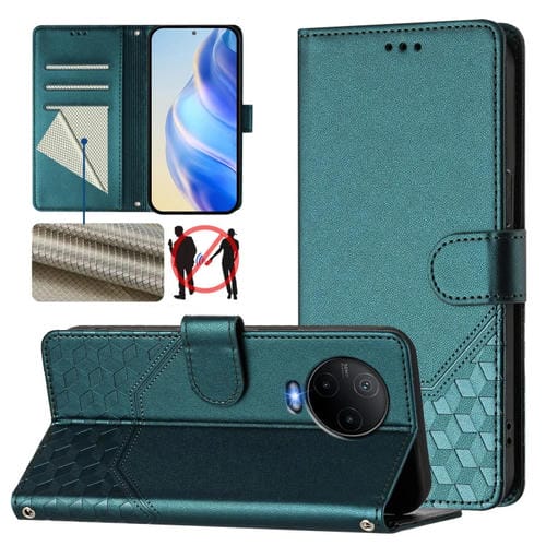 Funda de Cuero Rfid con Relieve en Panal para Infinix Note 12 4G y Note 12 Pro 4G (Verde Pavo Real)