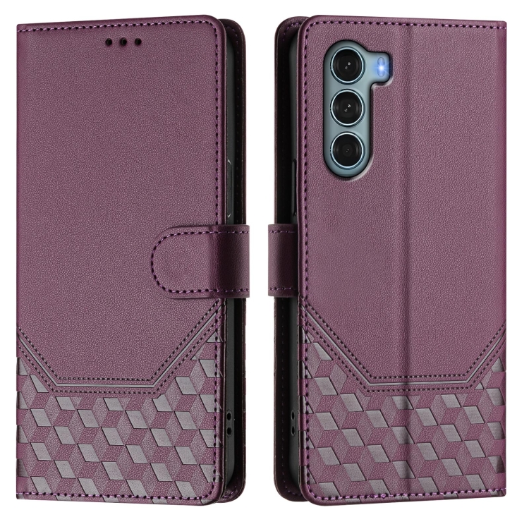 Funda de Cuero Rfid con Relieve en Panal para Motorola Edge S30 y Moto G200 5G (Violeta)