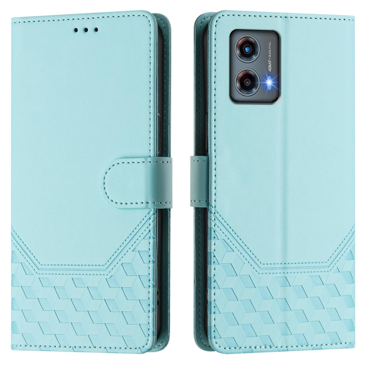 Funda de Cuero Rfid con Relieve en Panal para Motorola Moto G 5G 2023 (Verde Menta)