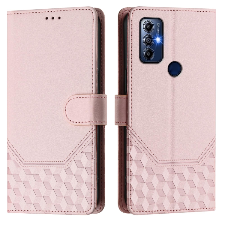Funda de Cuero RFID con Relieve en Panal para Motorola Moto G Pure 2021 y G Play 2023 (Rosa)