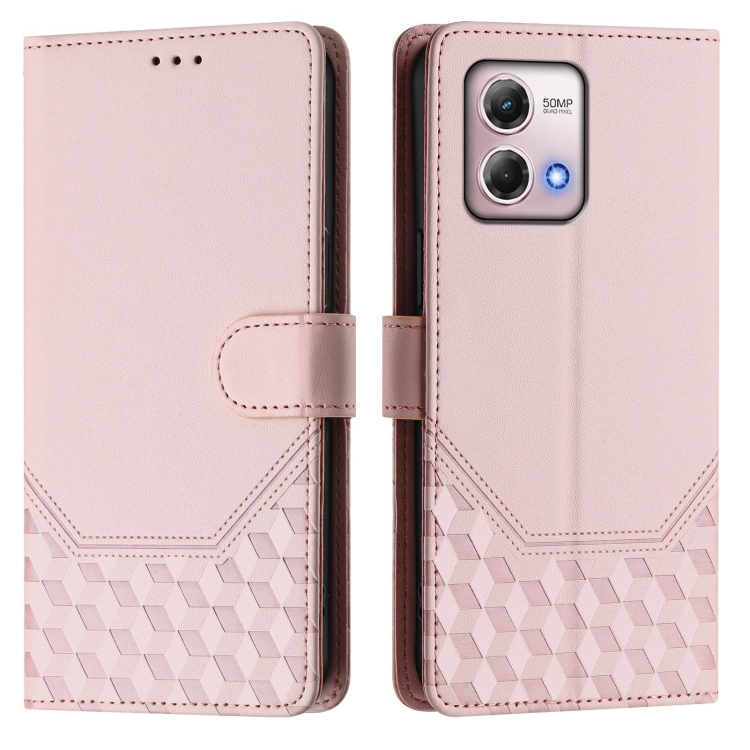 Funda de Cuero Rfid con Relieve en Panal para Motorola Moto G Stylus 2023 4G (Rosa)