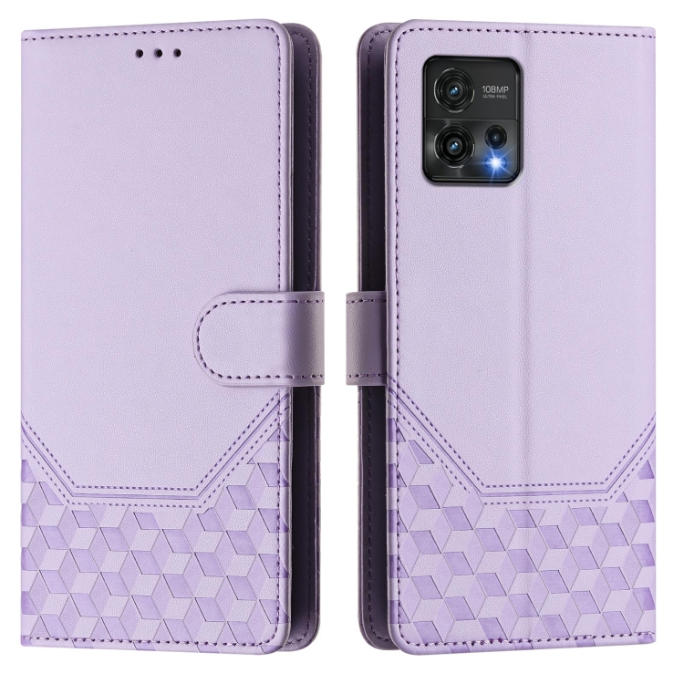 Funda de Cuero Rfid con Relieve en Panal para Motorola Moto G72 (Morado Claro)