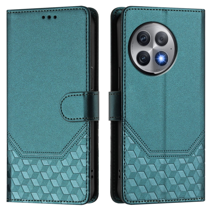 Funda de Cuero Rfid con Relieve en Panal para OnePlus Ace 2 Pro 5G (Verde Pavo Real)