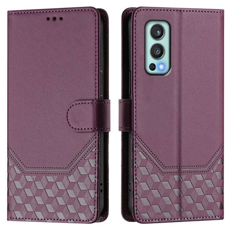 Funda de Cuero Rfid con Relieve en Panal para OnePlus Nord 2 (Violeta)