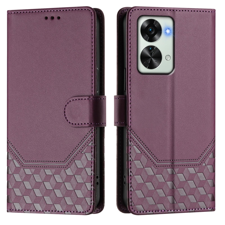 Funda de Cuero Rfid con Relieve en Panal para OnePlus Nord 2T (Violeta)