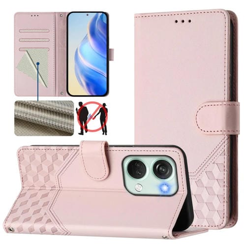 Funda de Cuero Rfid con Relieve en Panal para OnePlus Nord 3/Ace 2V (Rosa)
