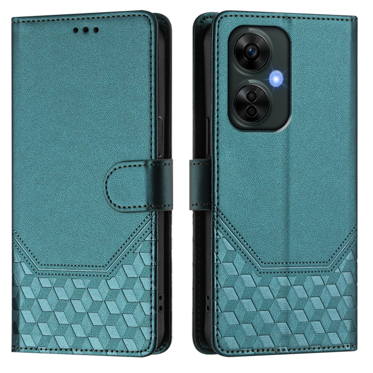 Funda de Cuero Rfid con Relieve en Panal para OnePlus Nord Ce 3 Lite/Nord N30 (Verde Pavo Real)