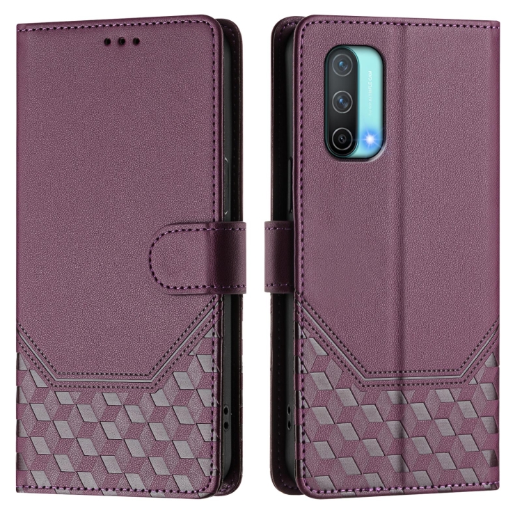 Funda de Cuero Rfid con Relieve en Panal para OnePlus Nord Ce 5G (Violeta)