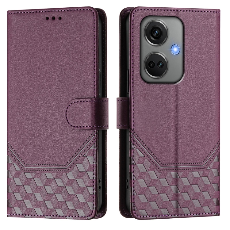 Funda de Cuero Rfid con Relieve en Panal para OnePlus Nord Ce3 5G (Violeta)