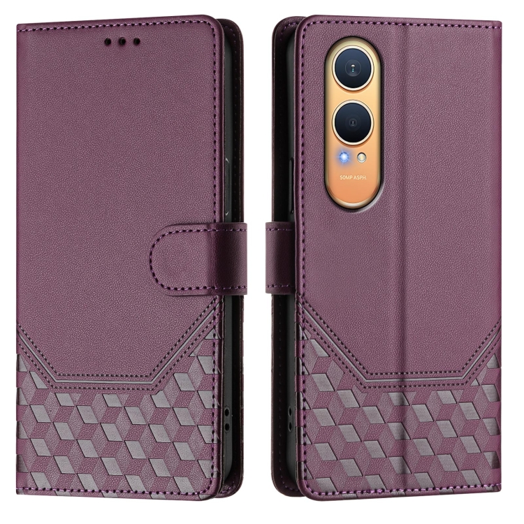 Funda de Cuero Rfid con Relieve en Panal para OnePlus Nord CE4 Lite (Violeta)