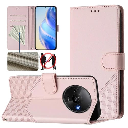 Funda de Cuero Rfid con Relieve En Panal para Redmi A3 4G Global/A3X 4G (Rosa)