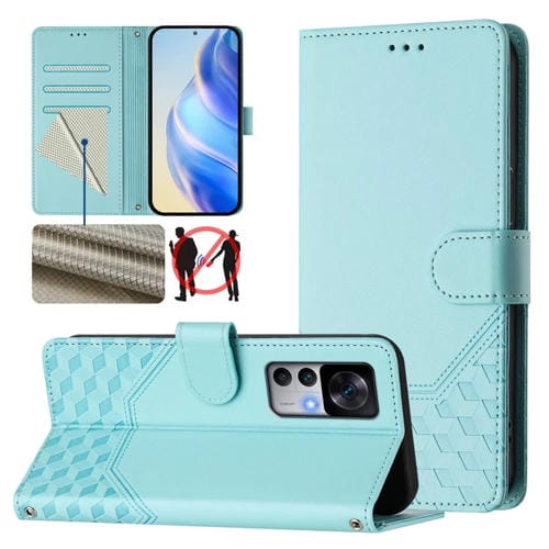 Funda de Cuero Rfid con Relieve En Panal para Redmi K50 Ultra (Verde Menta)