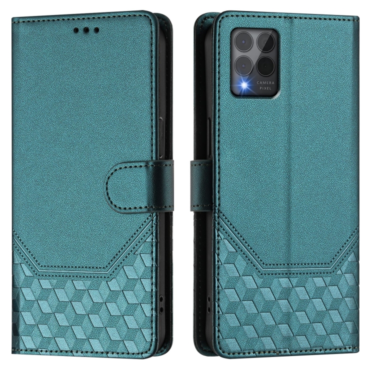 Funda Cuero Rfid Relieve Panal para T-Mobile Revvl 6 Pro 5G/6X Pro 5G (Verde Pavo Real)